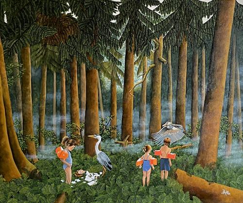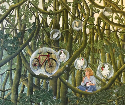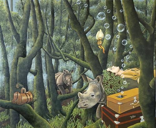 Dominique Hoffer crée des œuvres empreintes de réalisme détourné et de surréalisme poétique, où chaque élément trouve sa place dans des situations improbables mais étrangement familières.